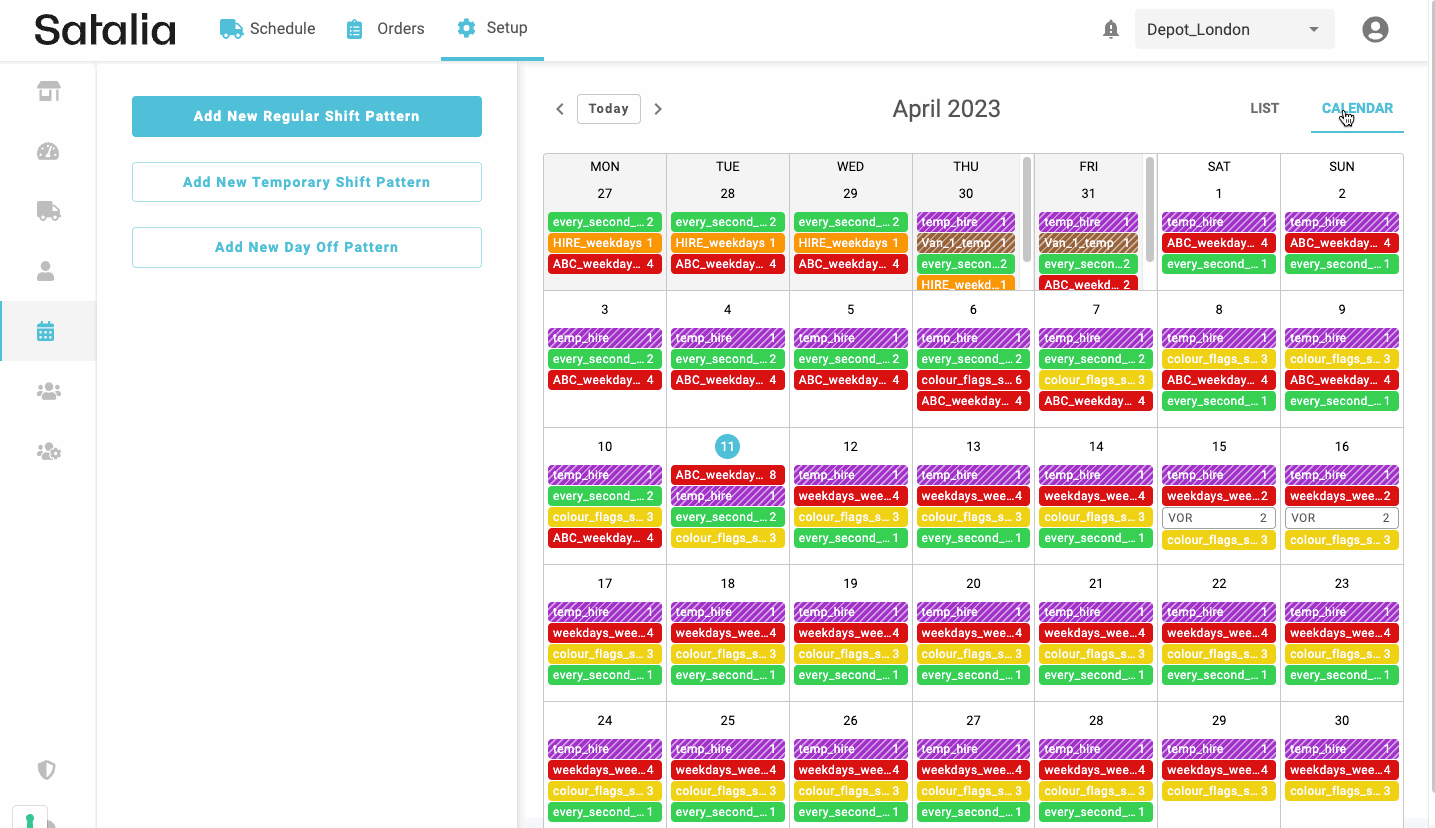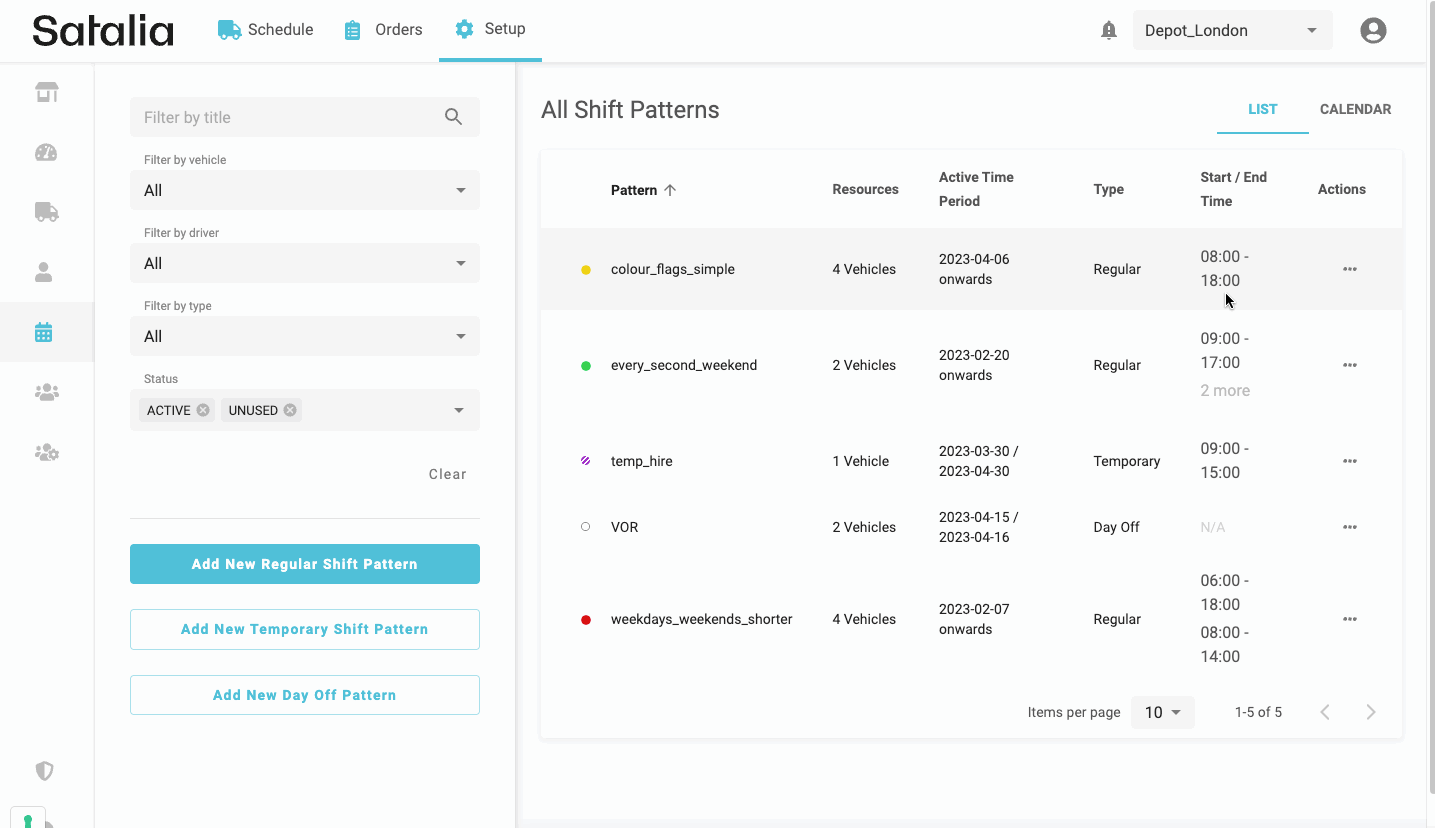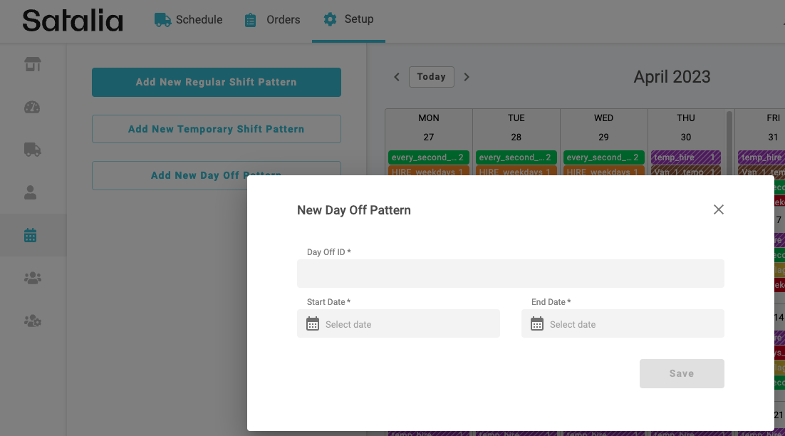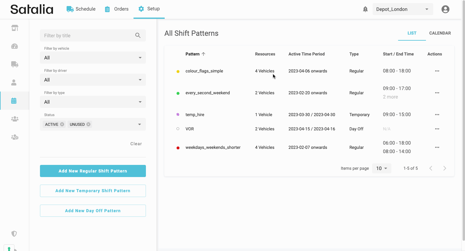 Shift patterns allow easier grouping and management of resources with the same shift settings: first, create a repeatable shift pattern, second, assign as many vehicles to the pattern as needed.