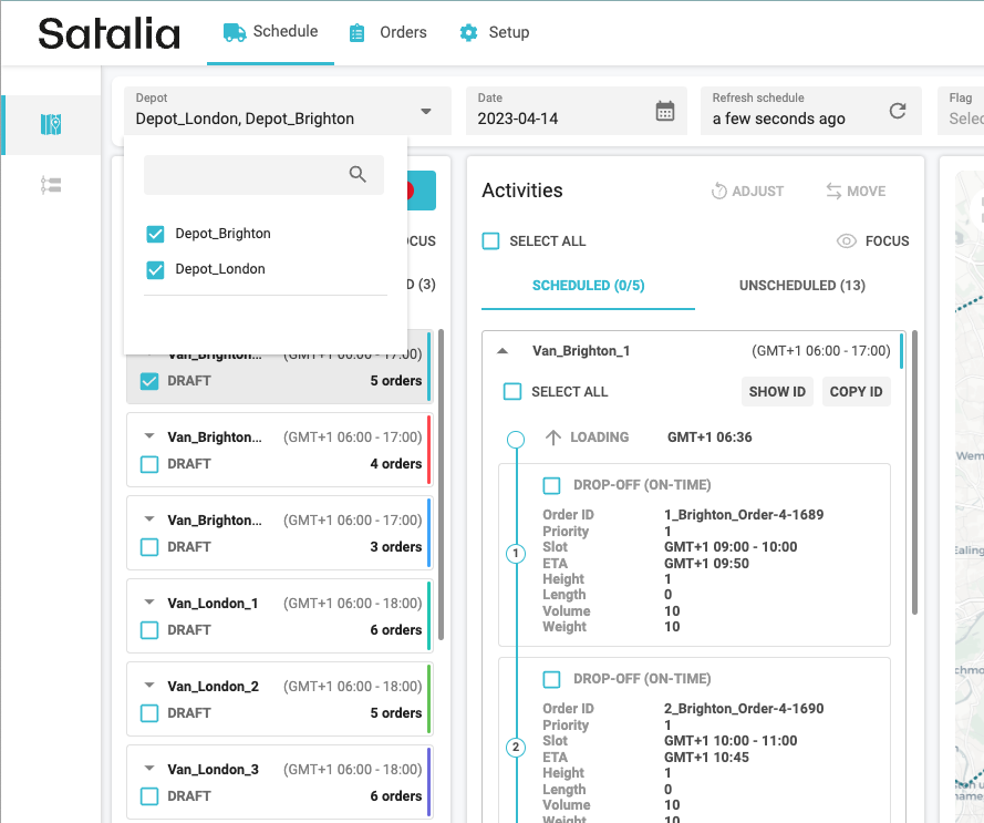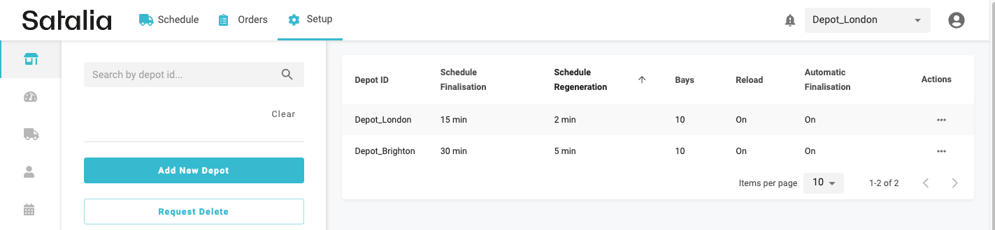 View multiple depots in the list and the map by selecting relevant ones from the drop down.