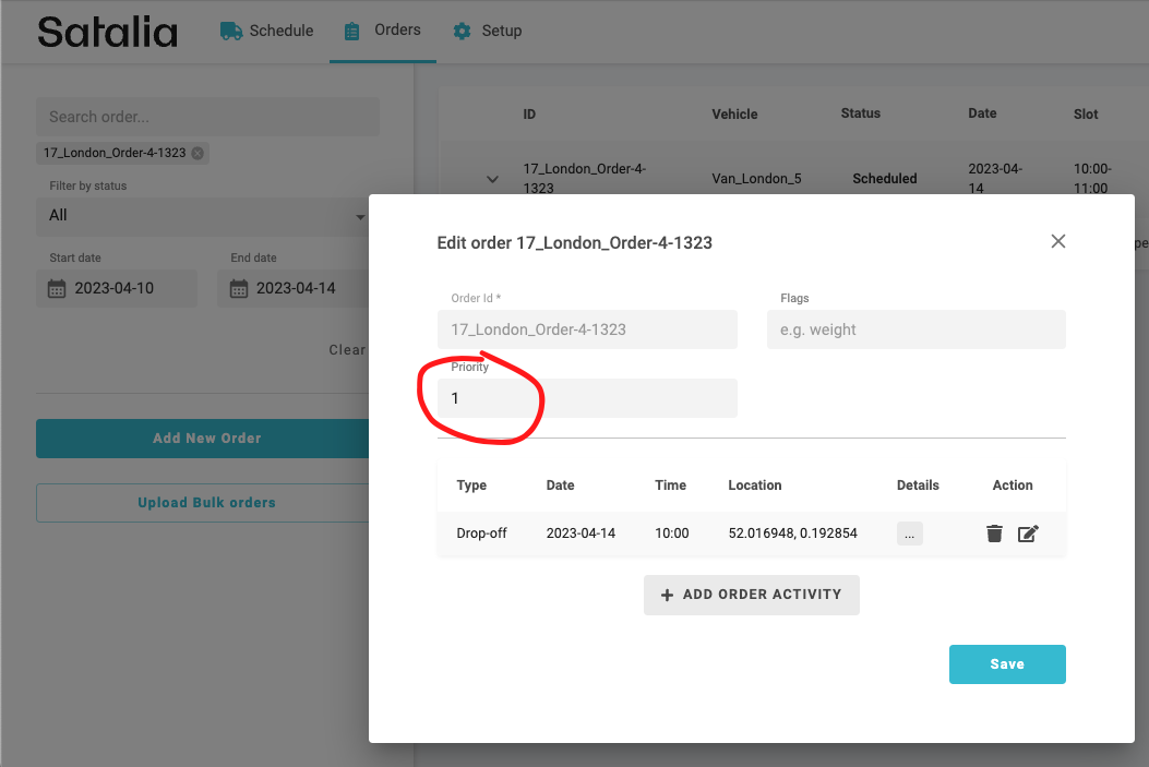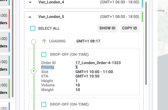 Note: a new functionality of orders prioritisation has been introduced in Q4 2022. Priority points are used to define which order is more important to schedule - the higher the priority point, more likely it will be scheduled in the circumstances when not all orders can be scheduled. Priority point per order can be set via an API or in the Orders page. The default value is 1. More about the order prioritisation in this article.