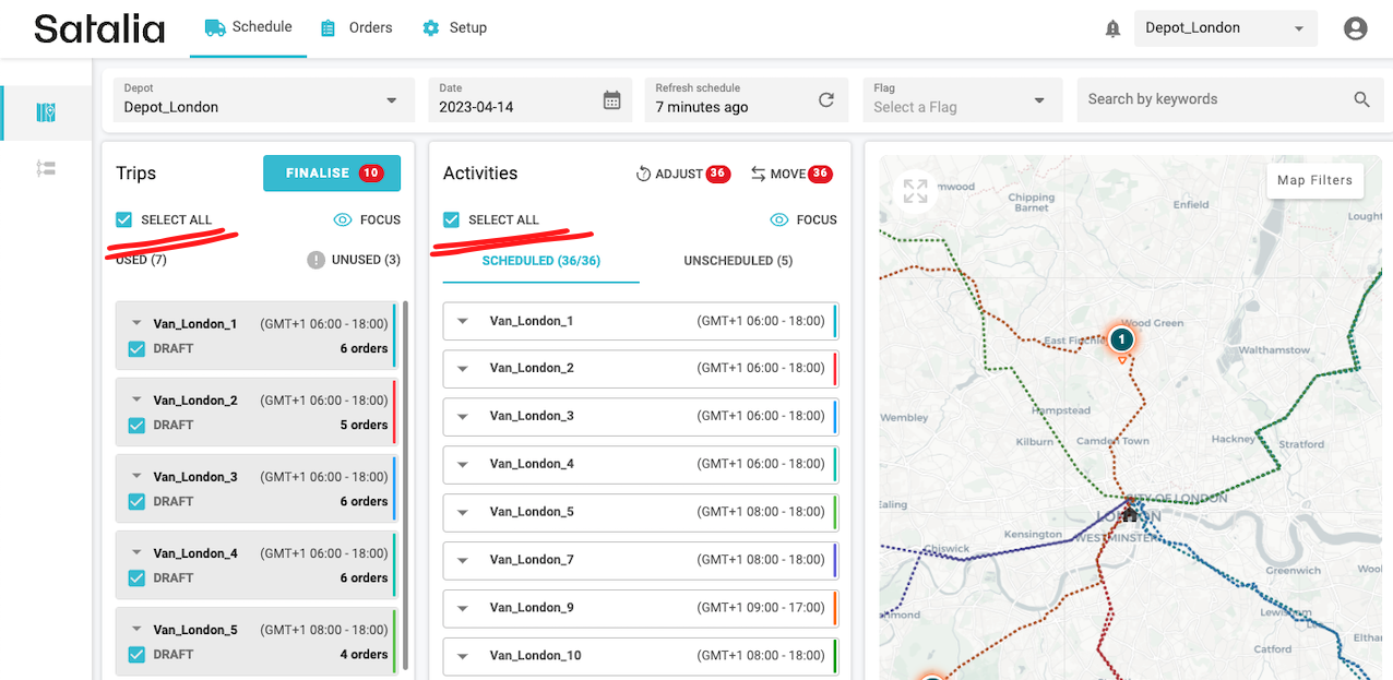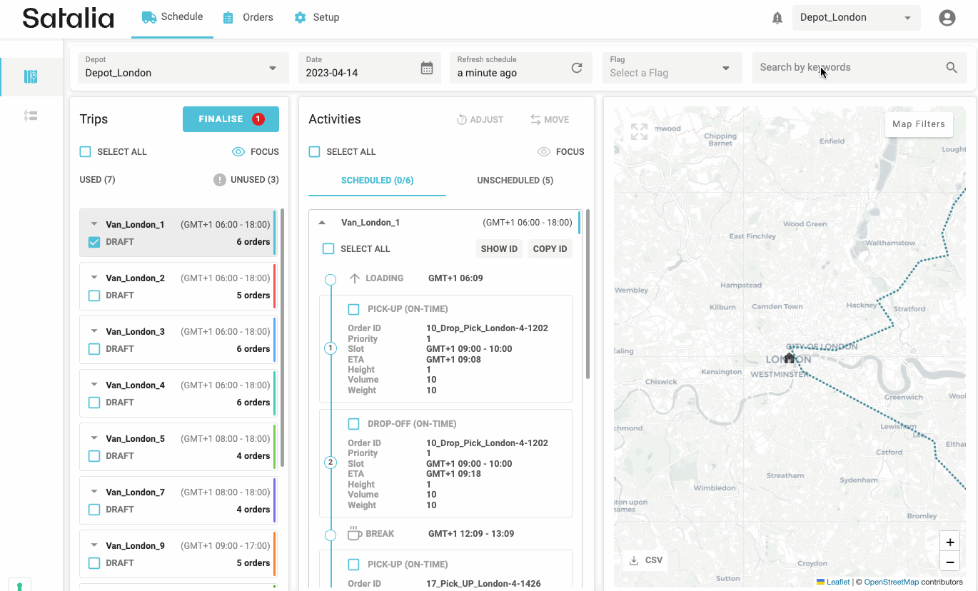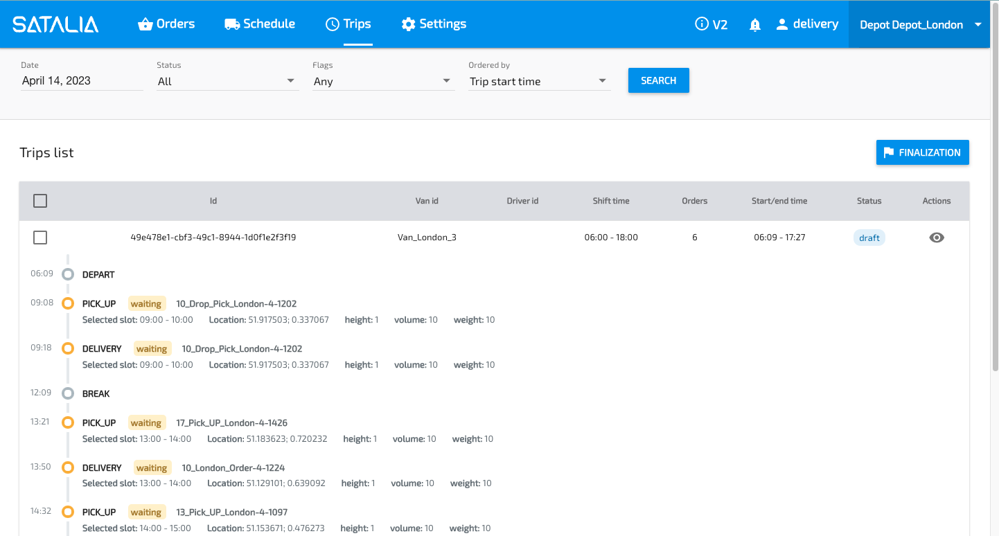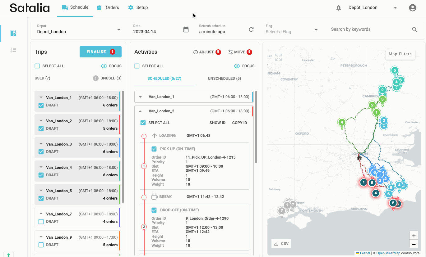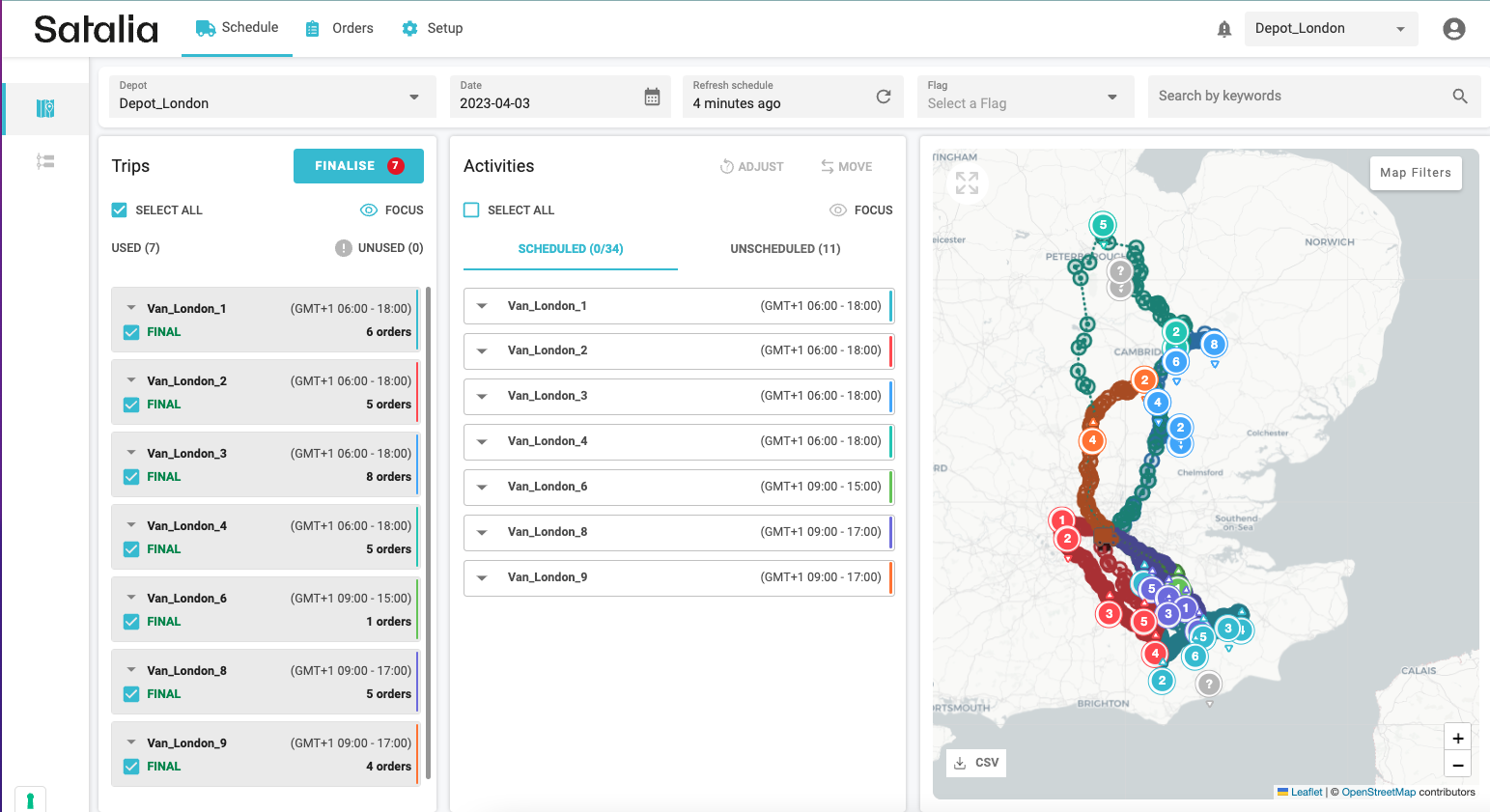 Control Room (CR) v2 is a new user interface to Satalia’s Delivery solution. There are no changes in the core optimisation engine being done as part of CR v2 initiative. Thus the process of how routes are being calculated and the quality of produced routes will not be impacted by introduction of CR v2.