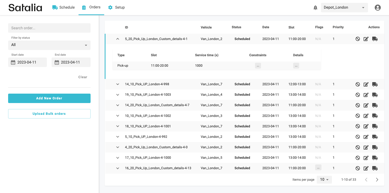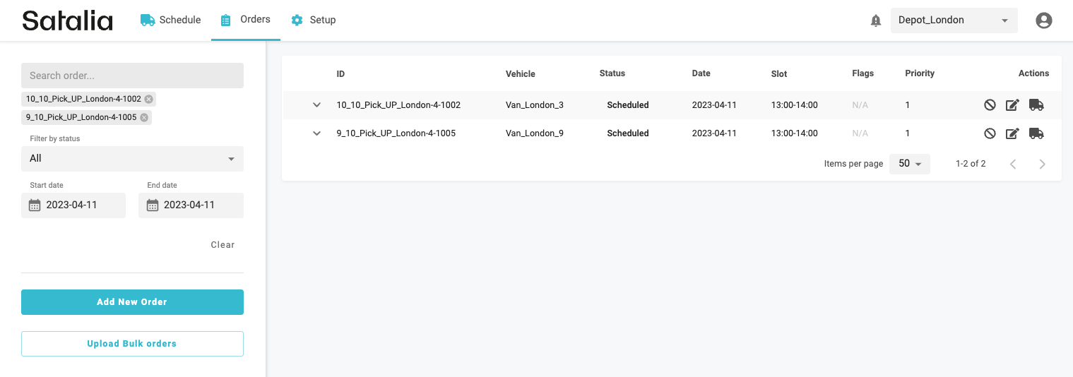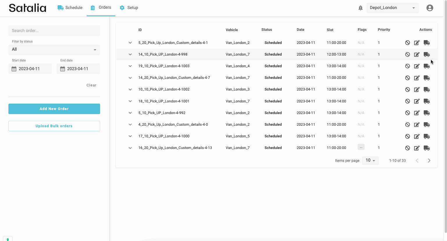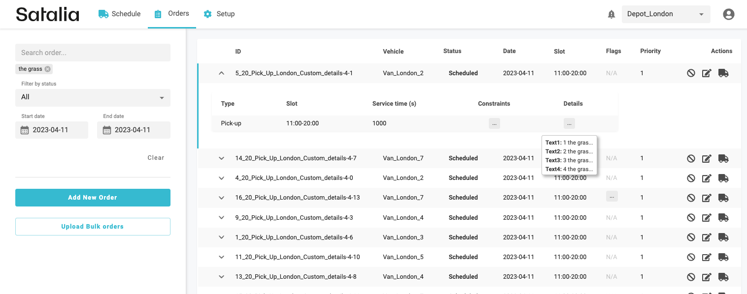 Additional fields like, vehicle ID for scheduled orders, flags, priority and custom details, can be viewed in the table without needing to open individual orders' edit modal.