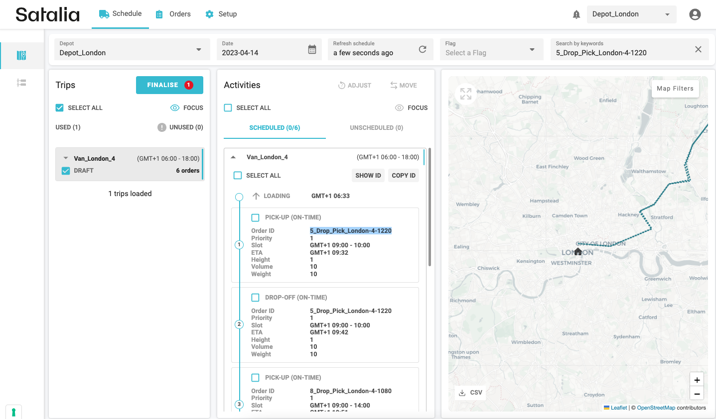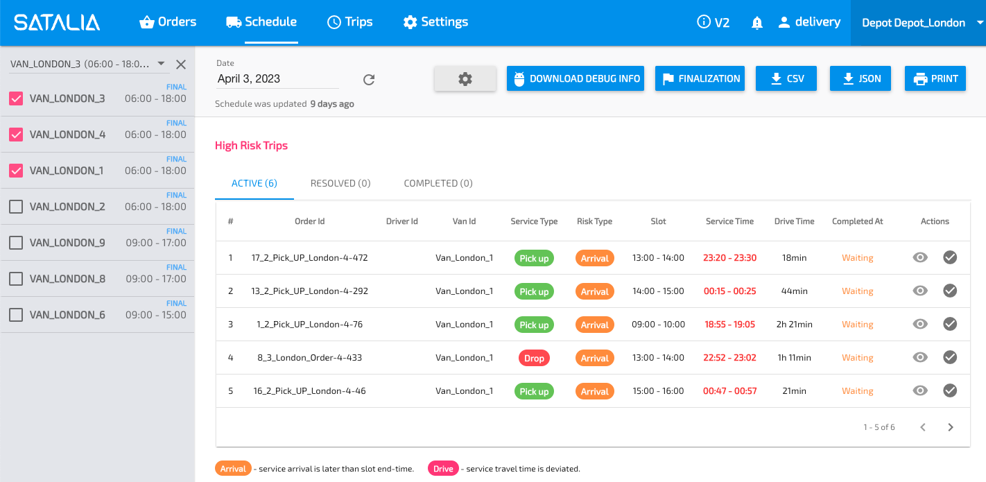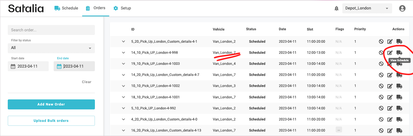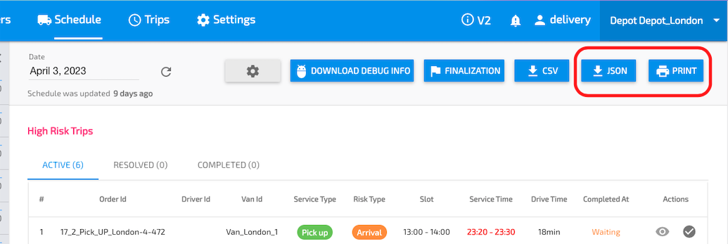 The order can be easily linked back to and viewed in the schedule’s page, just click on the van icon on the right.