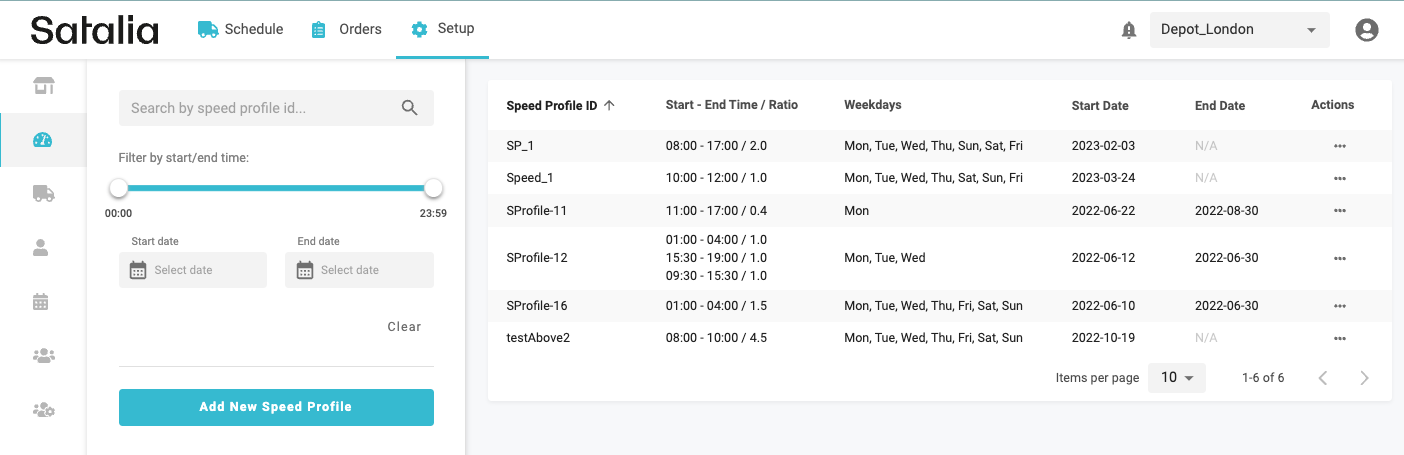 2. Speed profiles table as well has more of configuration information provided plus additional filters to find relevant profiles.