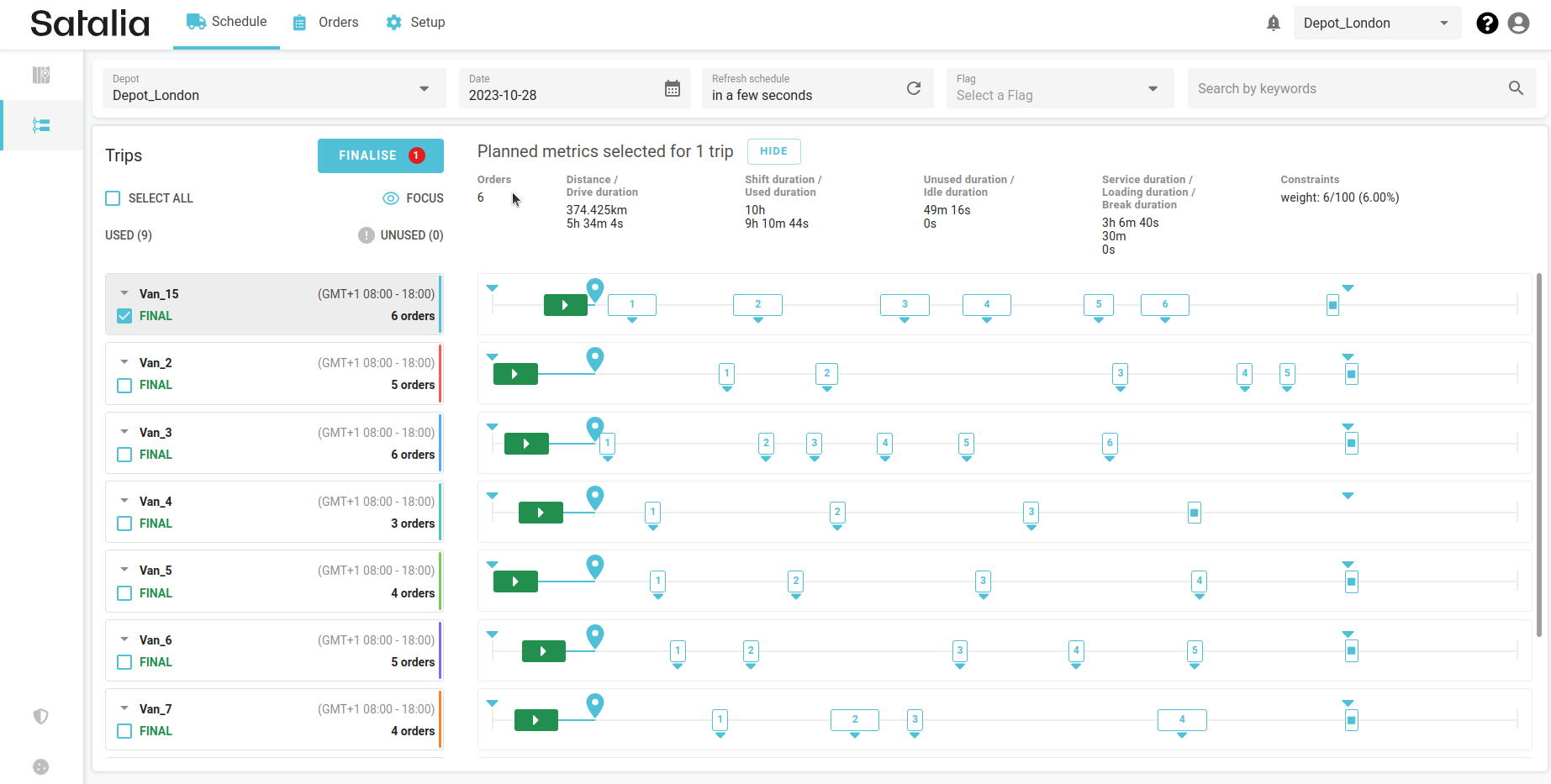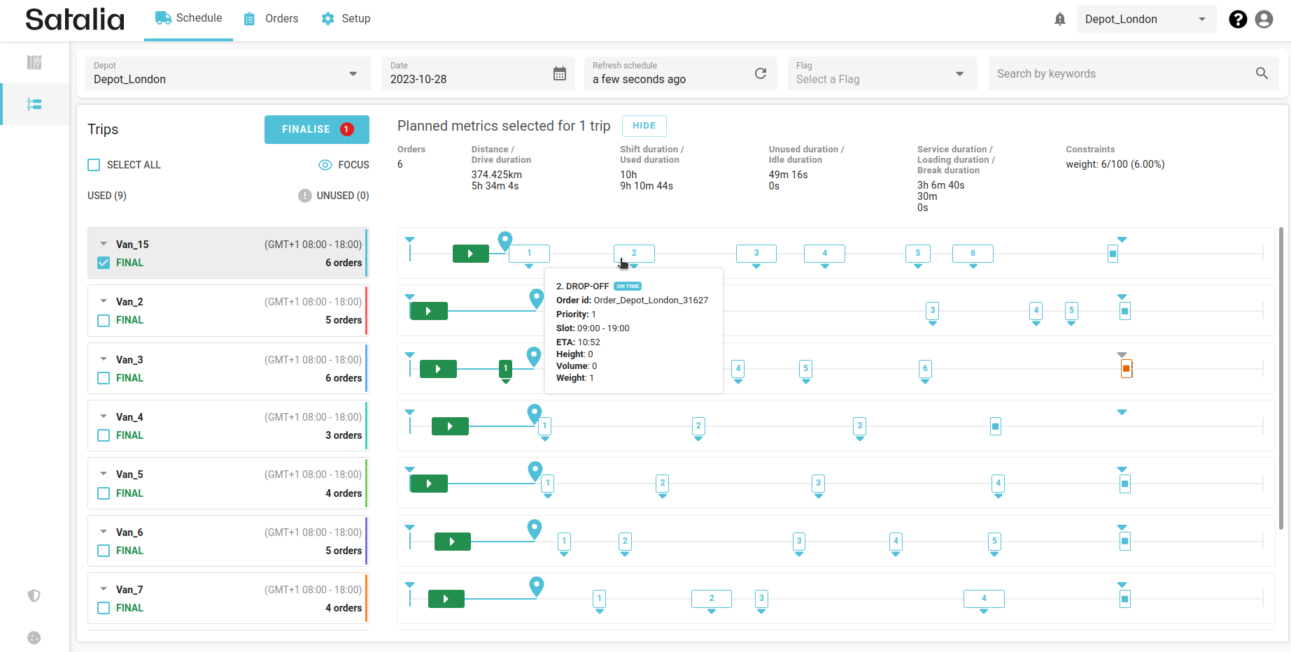 This means that an operations department can quickly spot any constrained trips and intervene where possible to resolve or prevent further delays on the delivery day. Or you can retrospectively inspect historical trips to better understand where and why any delays where caused.
