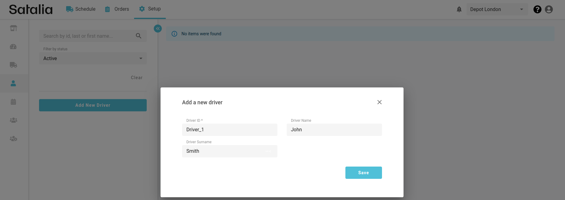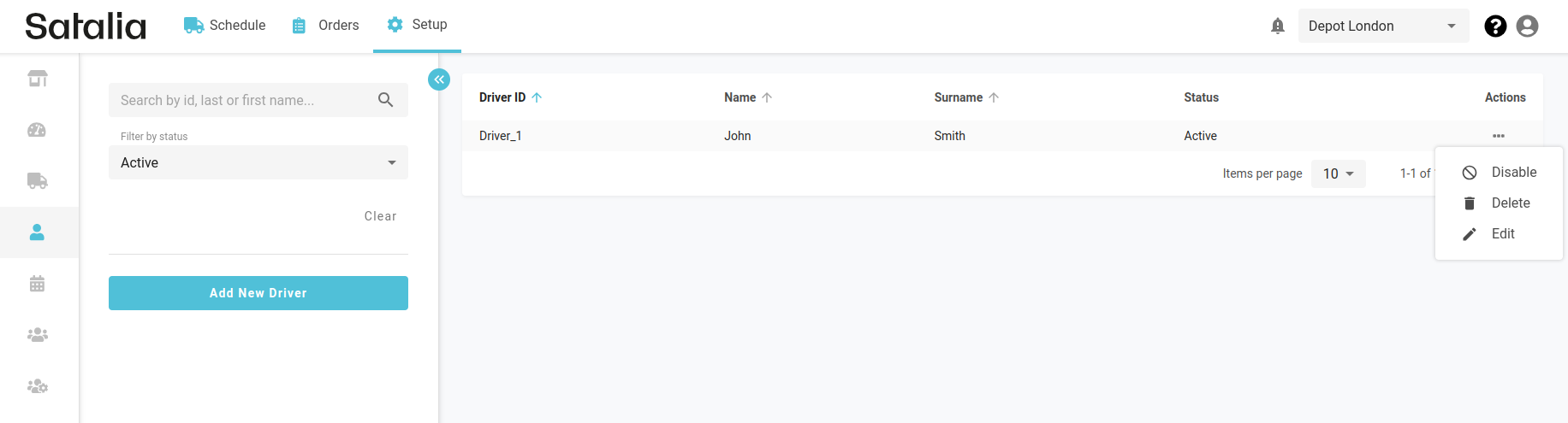 Once drivers are enabled, you can create them from the driver setup page by clicking on 'Add New Driver'. The only mandatory input is the driver ID, which cannot be changed.